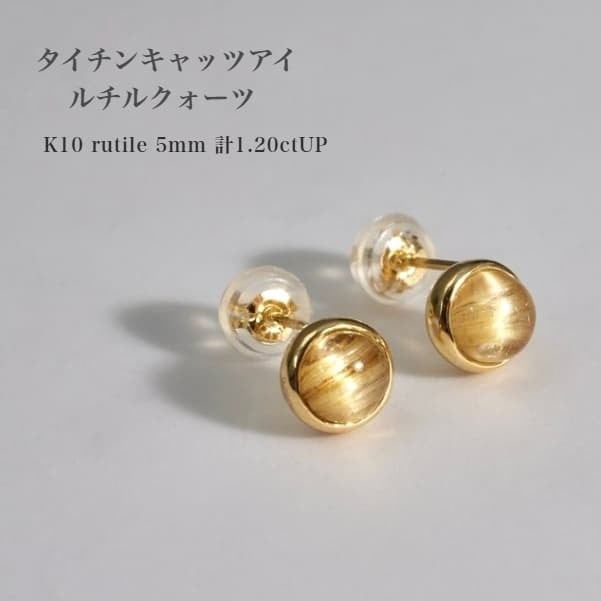 K10 タイチンキャッツアイ ルチルクォーツ ピアス 5ミリ