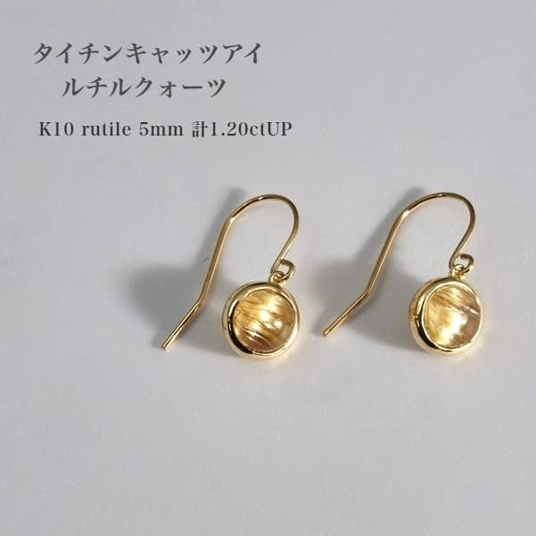 K10 タイチンキャッツアイ ルチルクォーツ ピアス 5ミリ