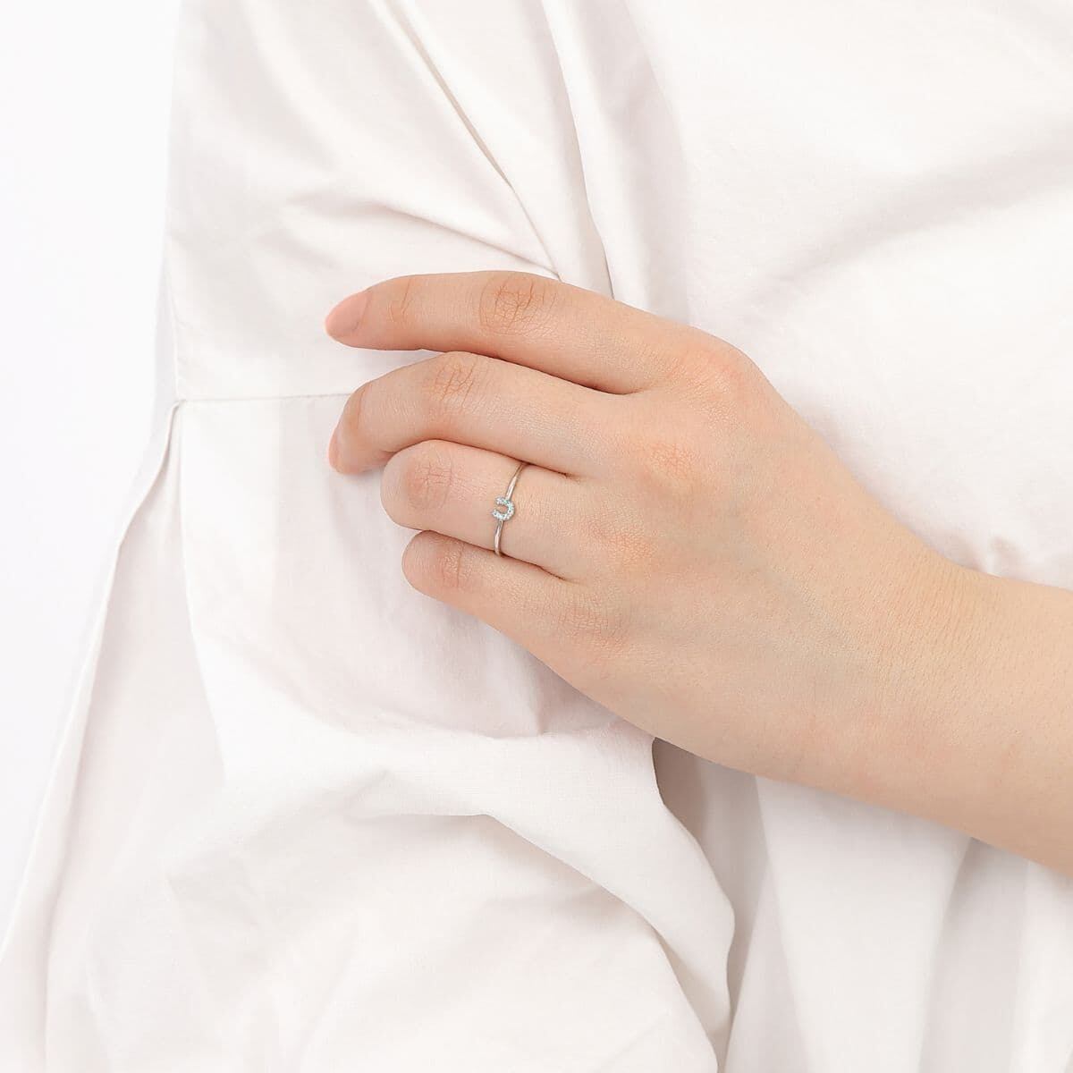 小ぶりで洗練されたラインが、指元にさりげない上品さを演出。