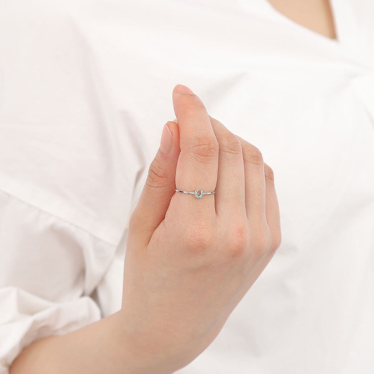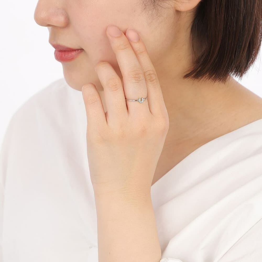 “幸運を受け止める”といわれるその美しいU字フォルムに、鮮やかなネオンブルーが印象的なパライバトルマリンを丁寧にあしらいました。