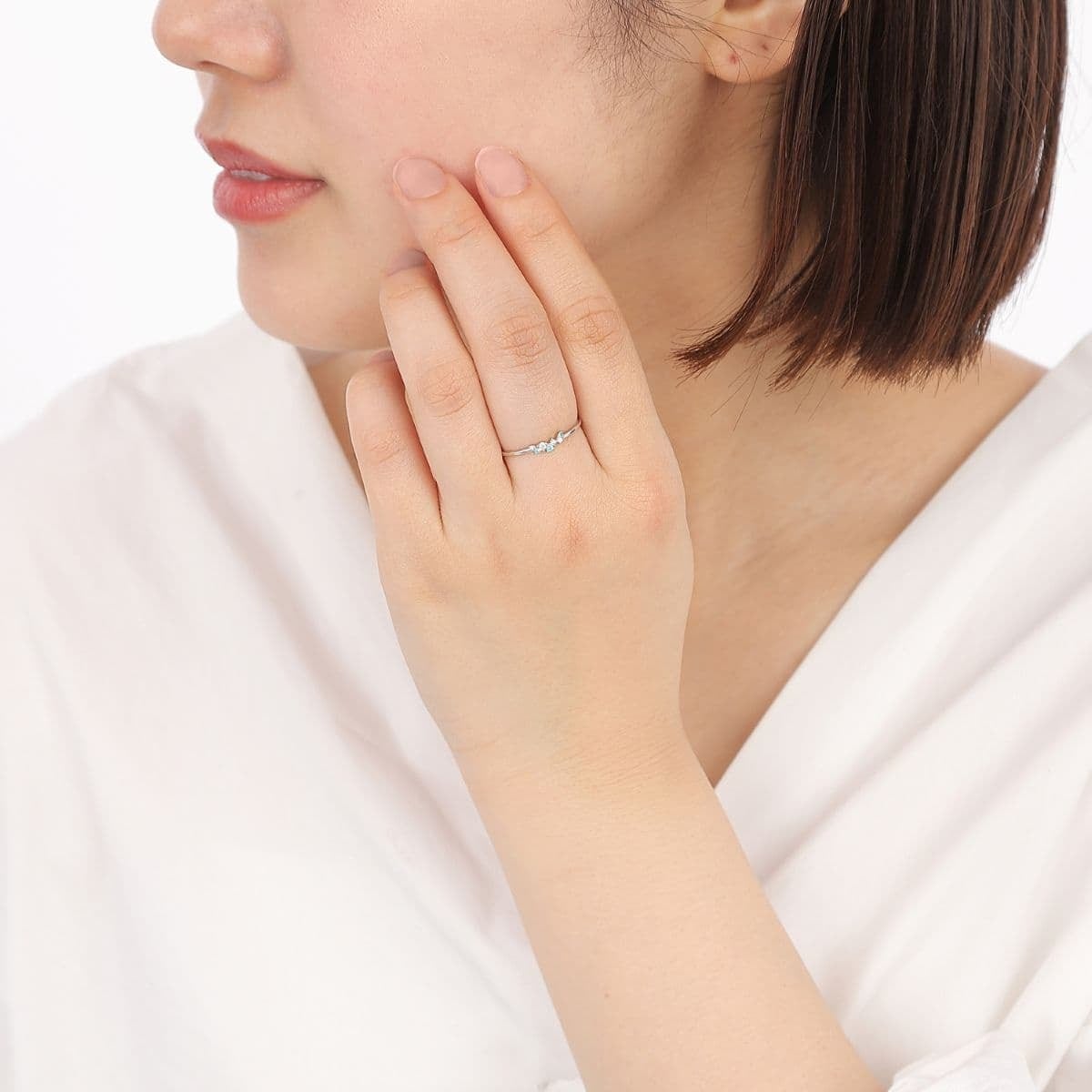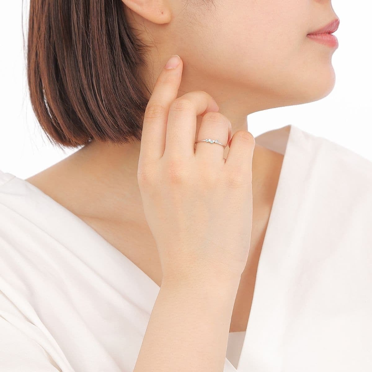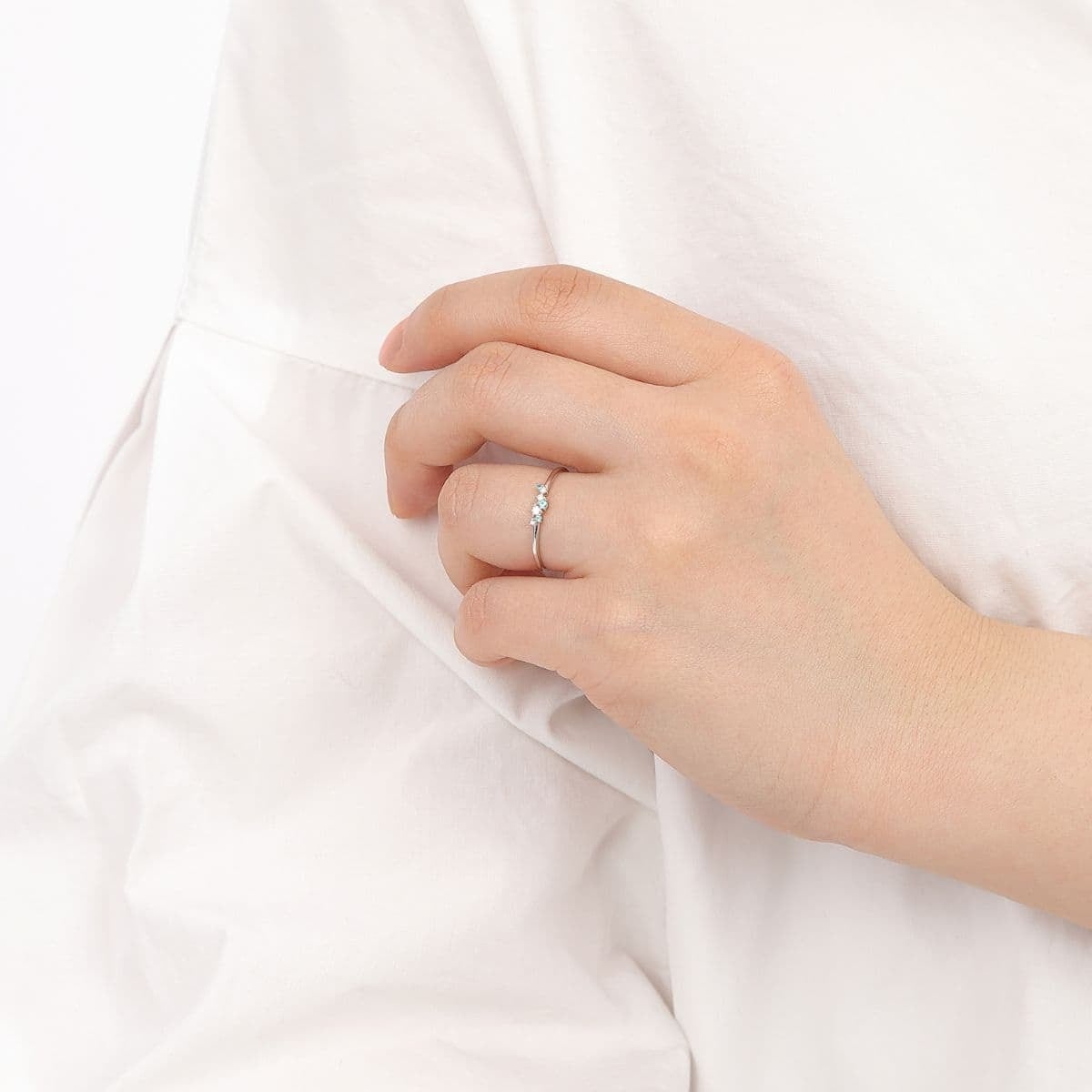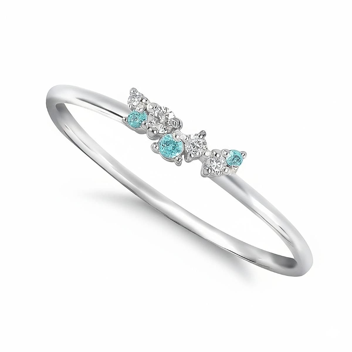 爽やかなネオンブルーのパライバトルマリンと、凛としたダイヤモンドの輝きが重なり合い、指元に洗練された華やぎを添えます。